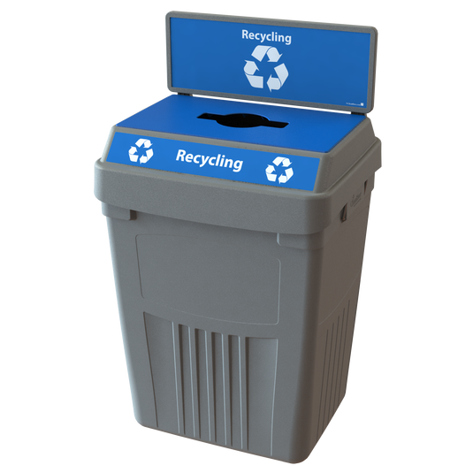 Vendor:CleanRiver Recycling SolutionsFlex E™ 2-Stream Waste + Recycling Bin – Grey – With Backboard – 50 Gallon